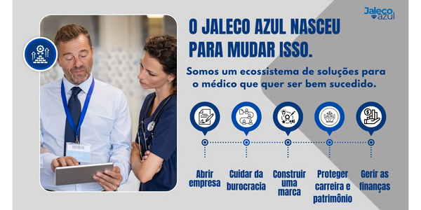 Queremos que, nos próximos anos, todo médico que sonha em empreender reconheça o Jaleco Azul como o caminho mais seguro e inteligente para transformar sua carreira em um verdadeiro negócio de sucesso.